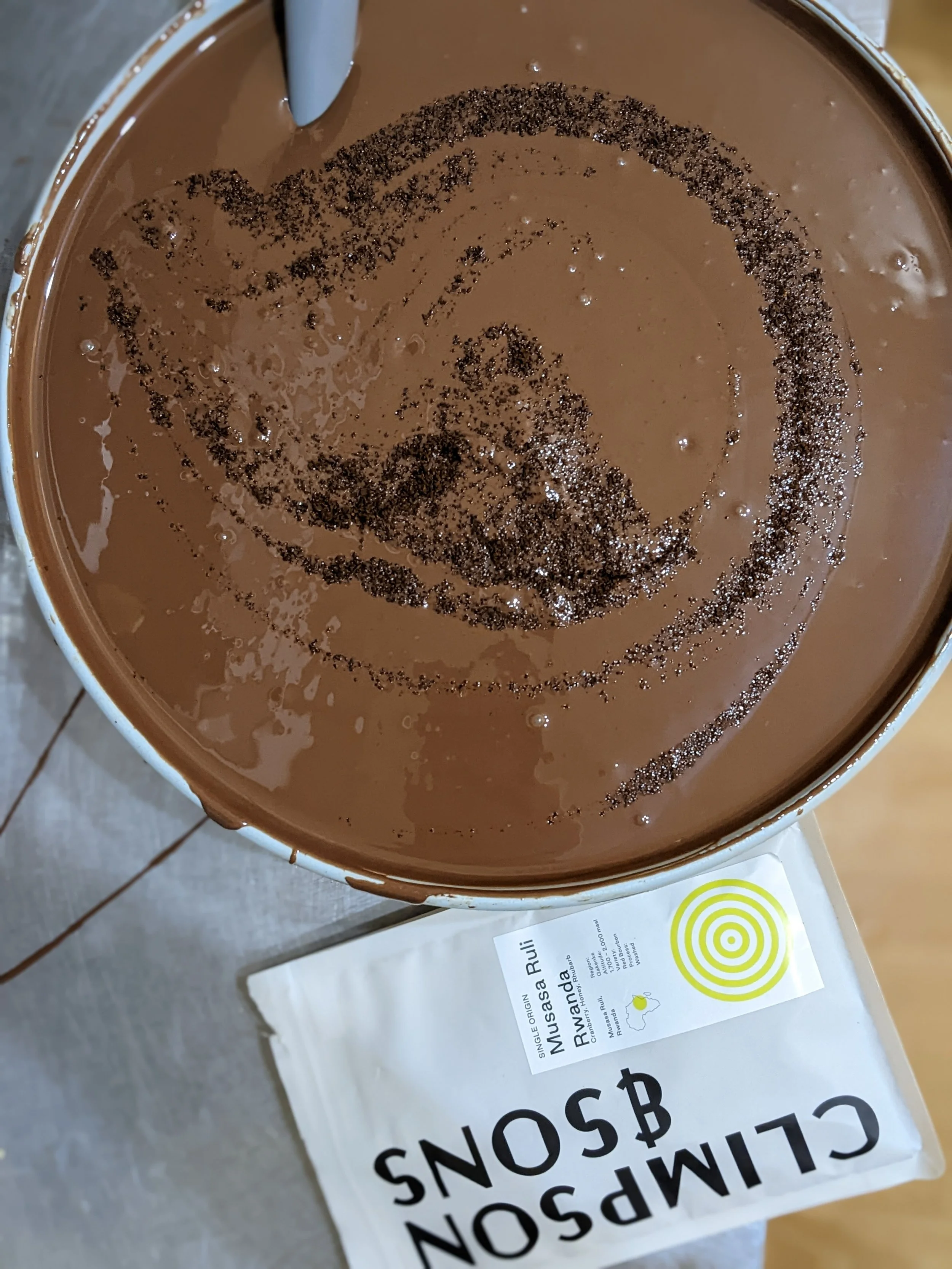 The perfect digestif. This milk chocolate bar is peppered throughout with single estate Rwandan coffee from the wonderful Climpson and Sons and gently flavoured with hazelnutty Frangelico. A very sophisticated treat.